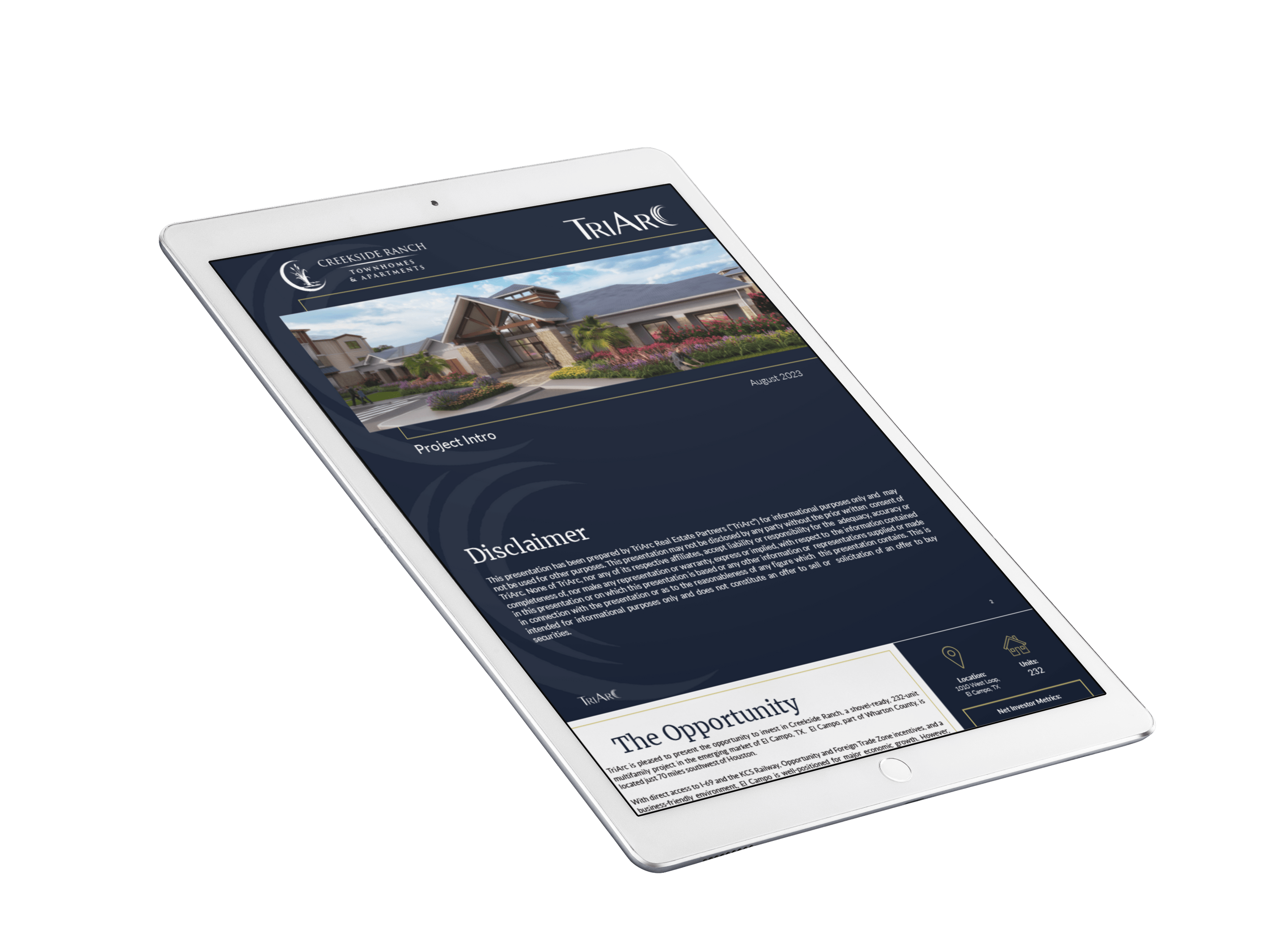 We've conducted traditional market surveys and job market reviews through Integra Realty Resources to identify the demand and potential for this development. We also conducted independent surveys of 827 local residents over a 30 day period. Our surveys show that there is a pent-up demand for new, non-subsidized multifamily housing in El Campo, with over 200 residents pre-qualifying for Creekside Ranch based on income criteria alone. With projected job growth within El Campo and the surrounding areas, we anticipate a stabilized occupancy level of 93% by late 2024.